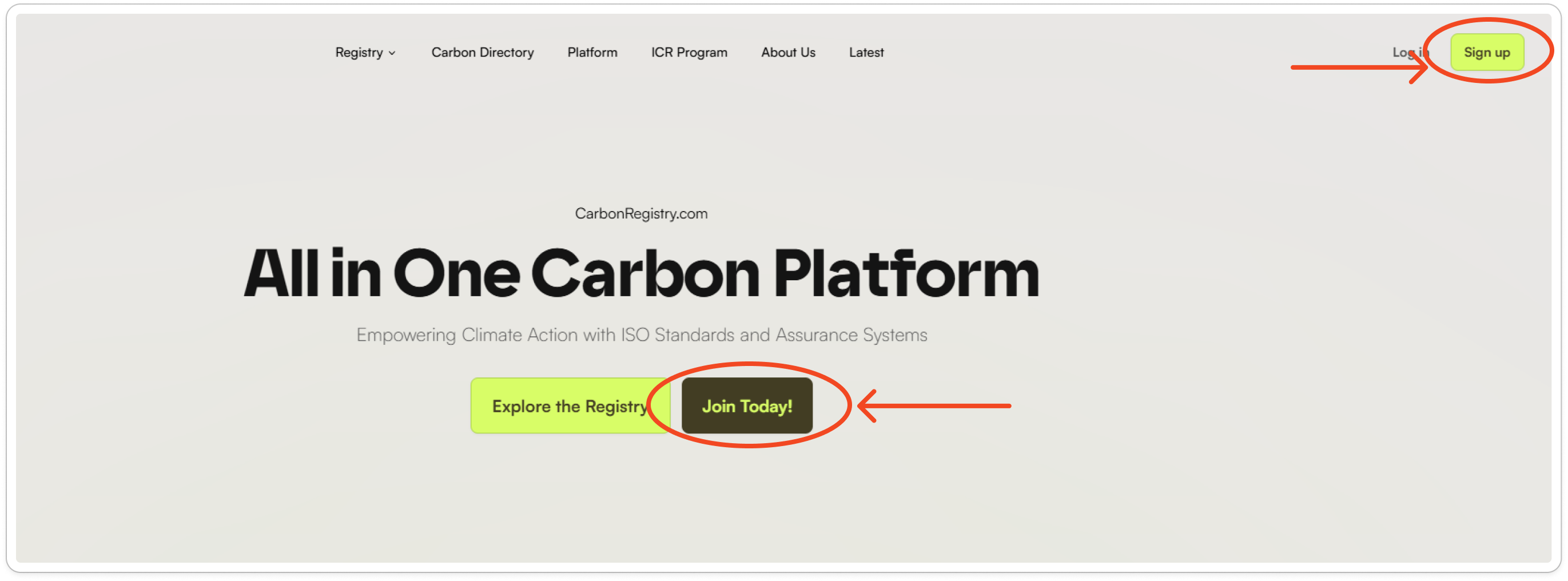 To create a user account, navigate either to [CarbonRegistry.com](https://carbonregistry.com) or to [app.carbonregistry.com](https://app.carbonregistry.com) and follow the simple steps to establish your account.&#x20;